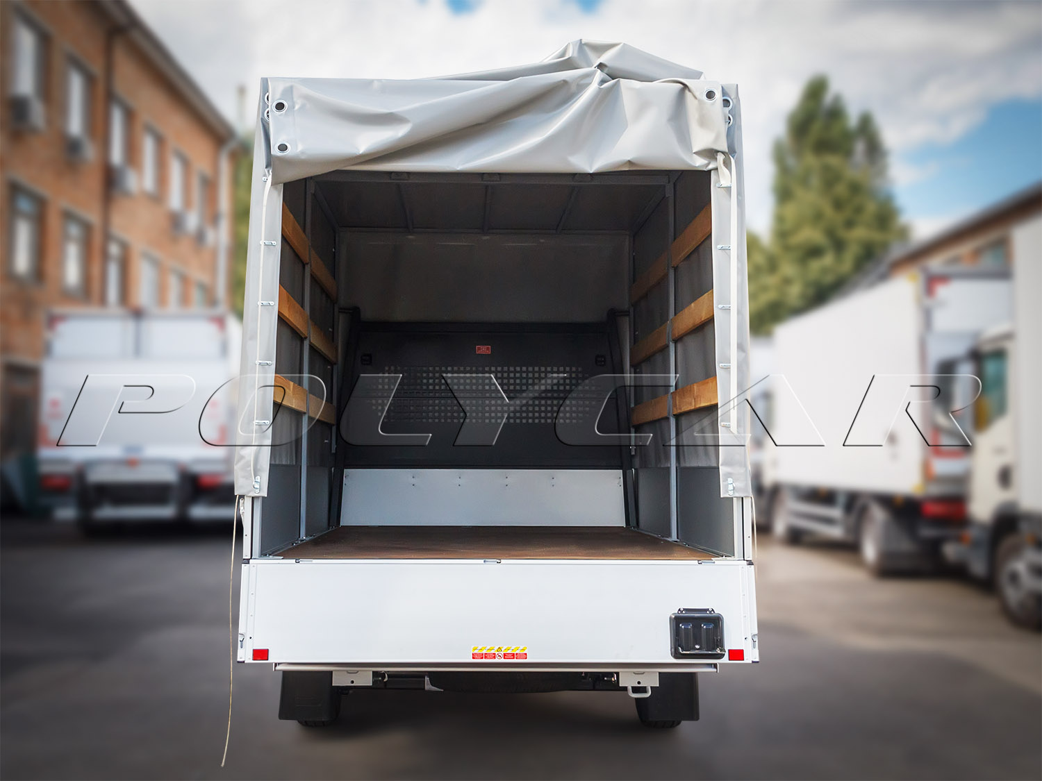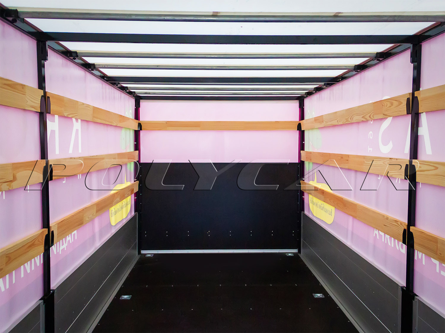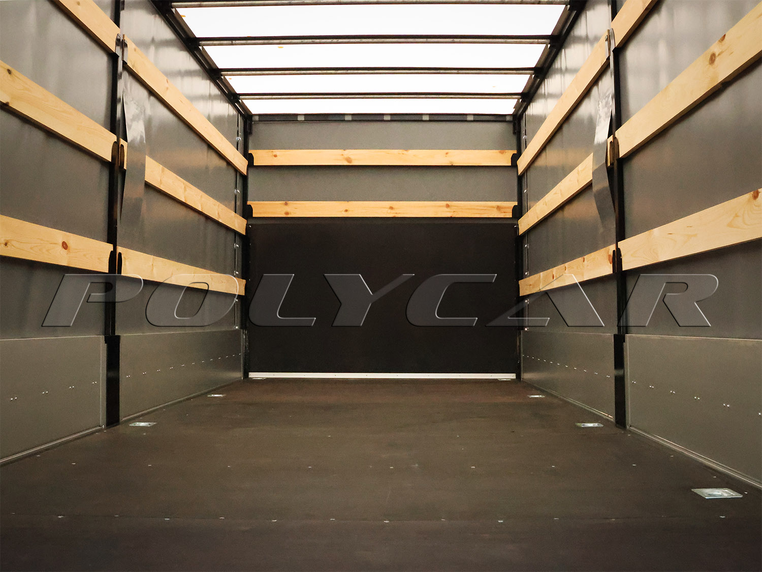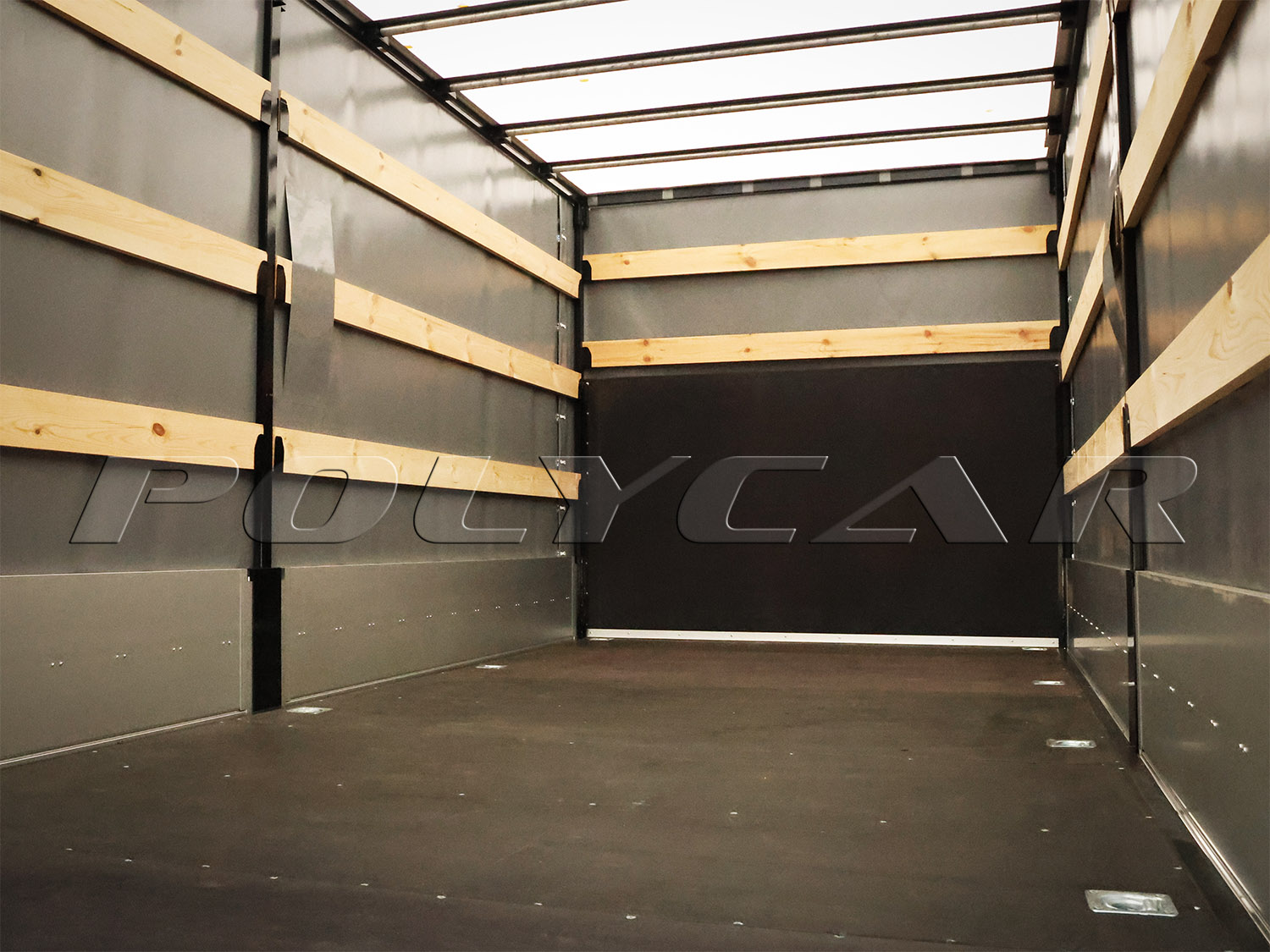 The flooring is made of moisture-resistant bakelite plywood with hidden loops for securing loads.