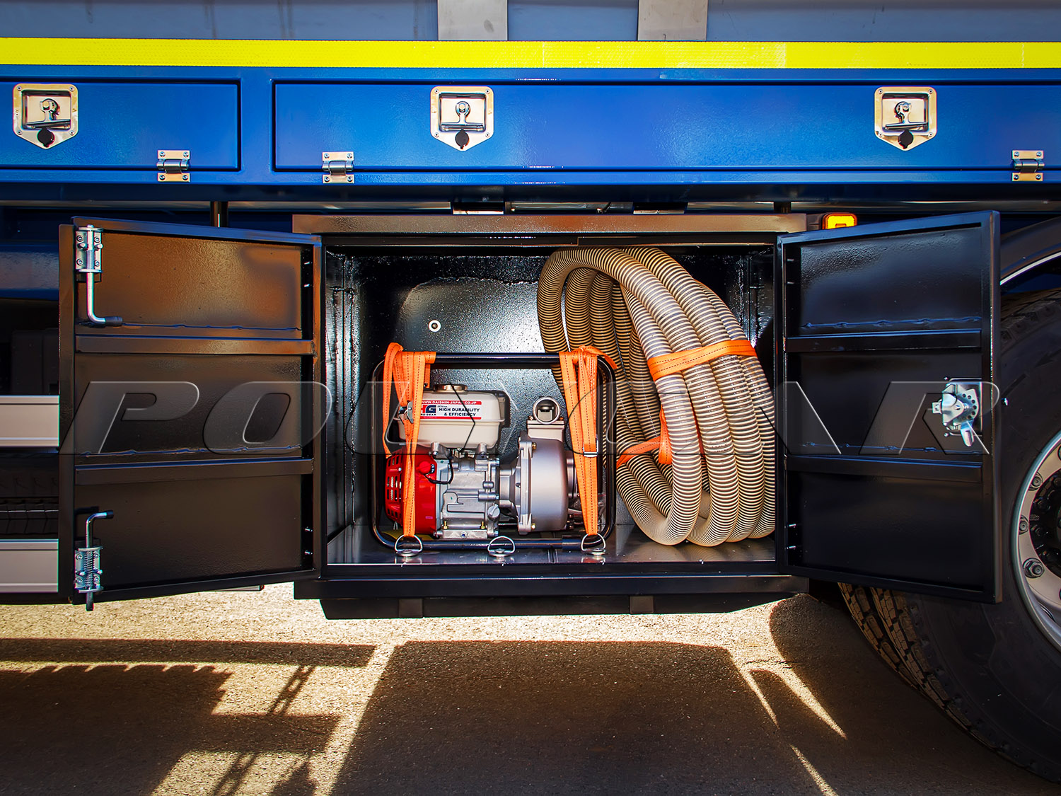 | Additional | tool boxes, liquid level sensors, distribution manifold, flow meters, side protection, position and marker lights |