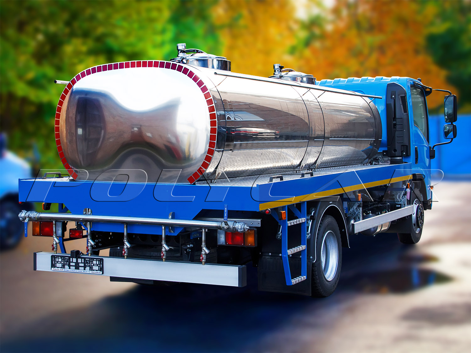 A milk tanker must be equipped with a special coating inside that does not react chemically with the transported products and is easy to clean (in most cases, food grade steel is used). The surface of the tank must be even and smooth, as this affects the quality of the milk.