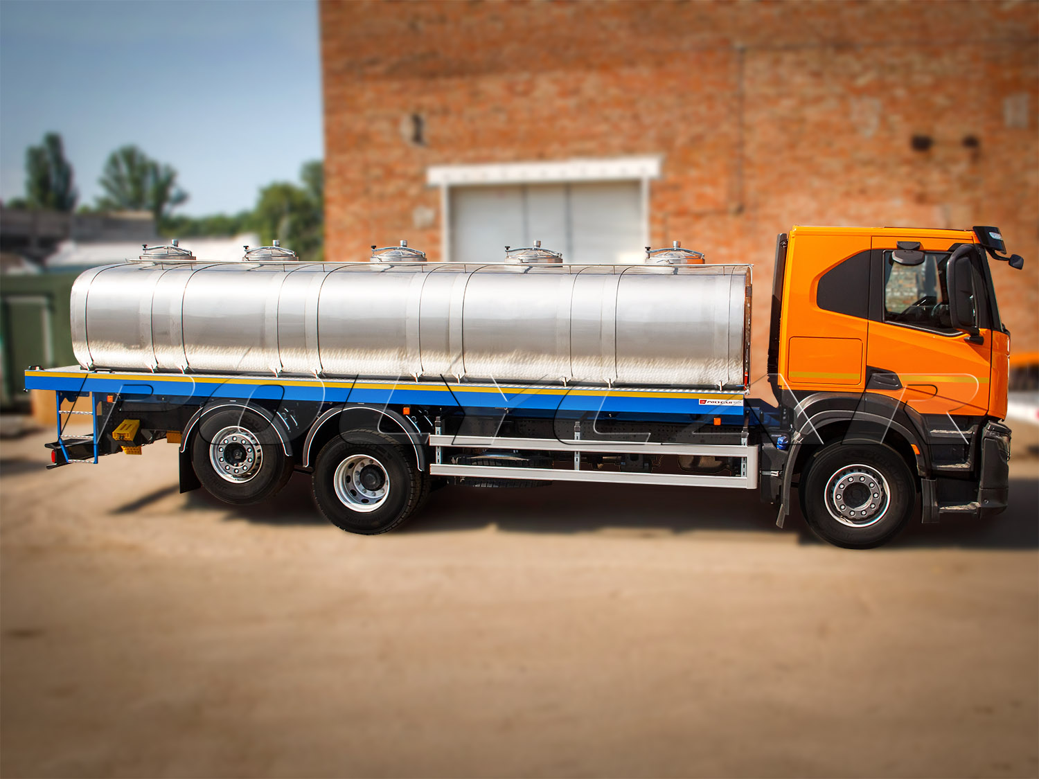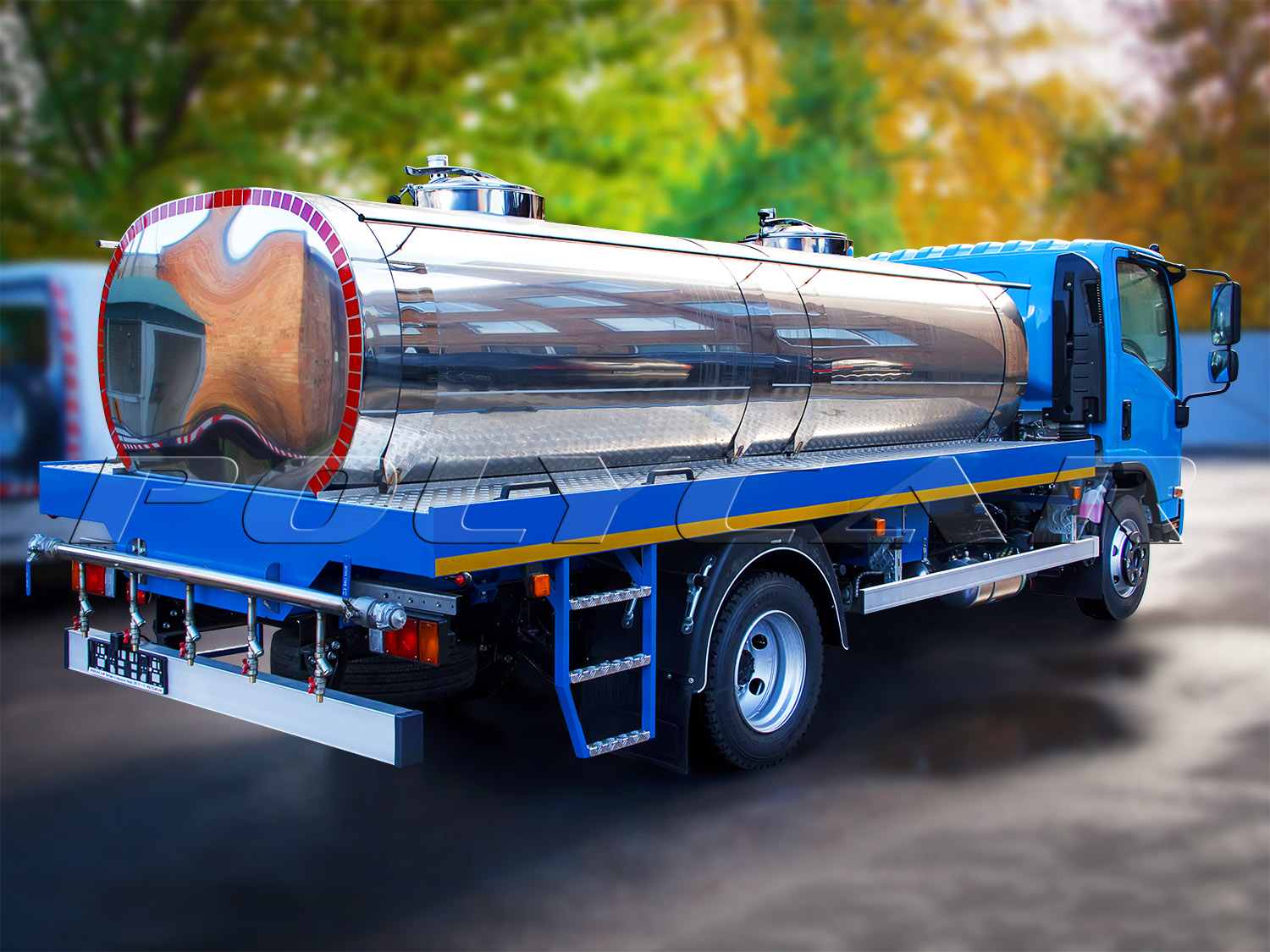 Milk tankers (tanks for food liquids) are a specialized type of road tankers used to transport milk or other food liquids from farm enterprises to processing plants. Since milk is a perishable product, special requirements are put forward for milk tankers. It is important that the vehicle and equipment ensure the invariability of the consumer qualities of milk at all stages of transportation. Polycar provides several standard options and custom-made tankers.