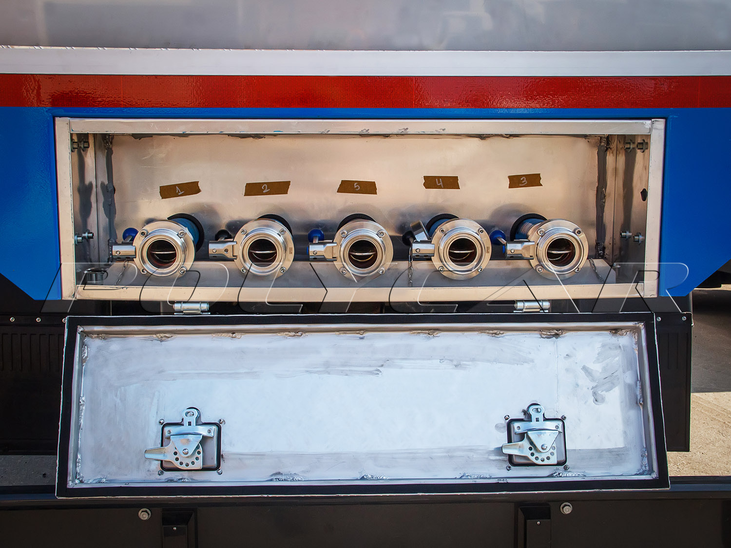 Hermetic storage of products during transportation is achieved thanks to hatches that are hermetically sealed. This approach guarantees 100% protection against impurities and microbiological reagents entering the milk. In addition, pumps with meters are built into milk trucks to control the liquid level, which has a positive effect on trade and economic relations between the customer and the supplier. Of course, the client can check the capacity of the tank at any time, and the sensor plays an indisputable role in this process, it is a kind of a fixer of losses. In addition to sensors the milk tanker is equipped with the following elements: suction and delivery hoses, flow meters with data on the display, locking parts, pneumatically operated gate valves, etc.