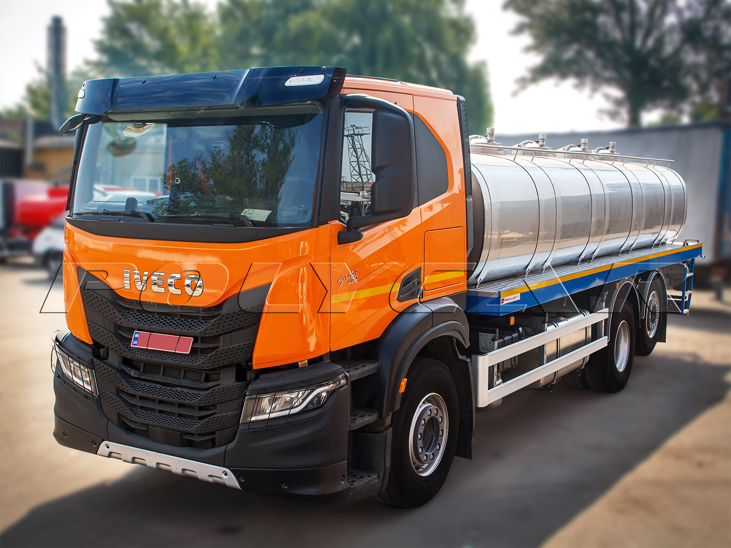 Milk tankers “Standard” – in the production of this option, high-quality stainless steel is used, thermal insulation of the body, pipelines and drain valves, and steel sheets with paintwork are used as external skin. To service the tank, the following are provided: a platform with an anti-slip coating (steel corrugated sheets) and a handrail. The number of sections and volume depend on the chassis and the wishes of the customer, each section is equipped with a separate filler neck and drain pipe.